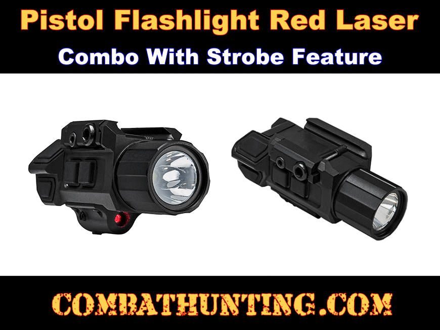 The Ncstar VAPFLSRV3 tactical weapon Pistol Flashlight with Strobe and Red Laser has a weaver/picatinny style mount. Red Laser Combo features Electronic Control Buttons and they are completely Ambidextrous, there are four button on each side of the pistol flashlight and laser body. There is a Flashlight Momentary button on top, Flashlight Constant On/Off button on the bottom, the Middle button turns the Laser On/Off, and the Flashlight Strobe button is at the front. Momentary & Constant On/Off buttons are positioned and angled ergonomically. They are accessible from your Trigger Finger or your support hand thumb when gripping the pistol. 3W Ultra Bright 200 Lumen CREE LED flashlight. Slides onto most Weaver / Picatinny / MIL-STD 1913/ Pistol accessory spec rails with room. Fully Adjustable Red Laser: 635-655nm, Max output <5mw, Class IIIa Laser. Dimensions: 3.4L x 1.5W x 1.6H. Black Anodized Aluminum body. Uses 1 each CR123A Battery Included.