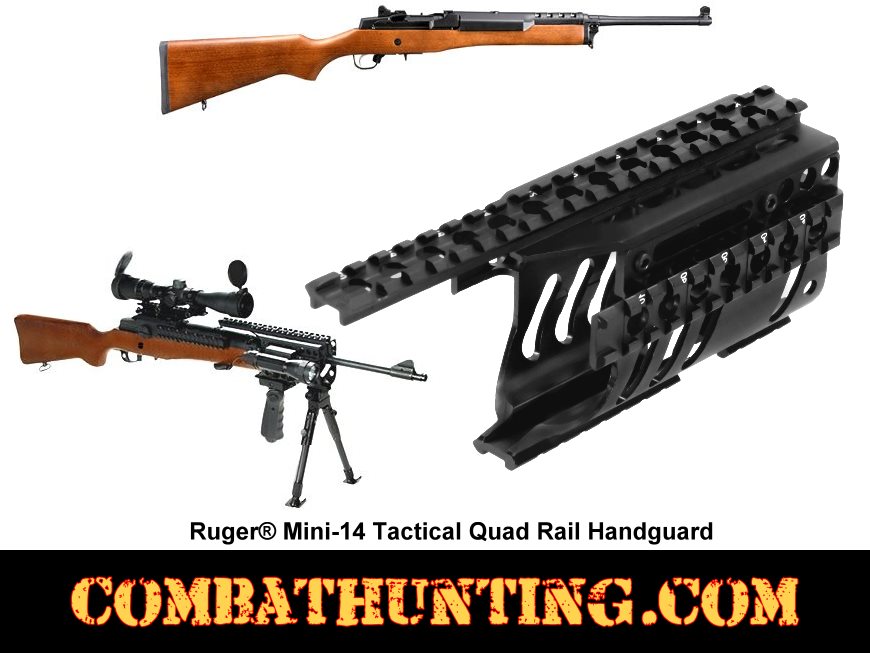 The Ruger Mini-14 Tactical quad rail handguard with four Picatinny rails is an excellent aftermarket accessory for Ruger Mini-14 Ranch Rifle owners. Ideal for most Ruger® Mini-14® Ranch Rifle autoloading models, this ready-to-install Picatinny quad rail provides ample space for mounting a variety of tactical accessories, such as vertical grips, bipods, laser sights, and tactical flashlights, and even optics. It is perfect for tactical or combat hunting uses. Constructed from black hard anodized aircraft-grade aluminum, the quad rail balances durability with lightweight strength. Its four Picatinny rails allow for easy attachment of vertical grips, bipods, laser sights, tactical flashlights, and even optics, making it perfect for tactical shooting or combat hunting. The T-marked rails enable quick removal and replacement of accessories, offering convenience during dynamic shooting situations. Designed to fit seamlessly with the original wood factory stock of the Ruger Mini-14 Ranch Rifle, this 8.25-inch rail adds a balanced platform without unnecessary bulk. It accepts all standard Weaver/Picatinny 1913 attachments, ensuring compatibility with a wide range of gear. Overall, this quad rail system stands out as a practical, well-crafted upgrade for firearm enthusiasts who want to modernize their Ruger Mini-14 ranch rifle. Its robust build and user-friendly design make it a reliable choice for hunters and tactical shooters alike, from Alaska to Montana to Texas, who appreciate its versatile features and solid performance.