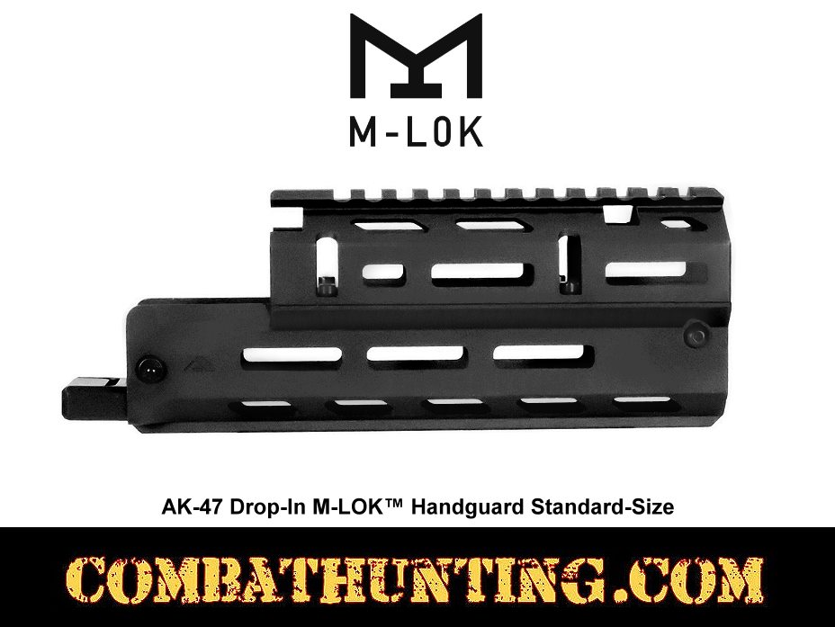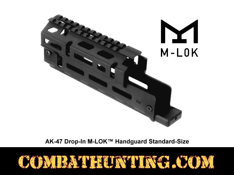 This AK-47 Drop-In M-LOK Handguard is compatible with most AK universal rifle platforms and includes an integral top Picatinny rail for mounting optics on stamped AK receiver AKM rifles. This AK Drop-In M-LOK™ Handguard is a versatile upgrade designed to fit most Russian stamped AKM rifles. making it ideal for enthusiasts seeking to enhance their Russian-pattern AK-47-type firearms. This short, standard-size handguard has a durable two-piece drop-in design that matches the classic Russian AK-47 handguard length of 7.5 inches, ensuring compatibility with a wide range of mil-spec AK-47, AKM, and AK-74 models. Constructed from hard-coat black anodized 6061 aluminum, the handguard offers a lightweight yet rugged solution for your rifle. Its top Picatinny 1913 rail includes a grenade sight cutout for easier installation, while the barrel nut and receiver clamp system securely fasten the handguard in place. With five M-LOK® accessory slots, it provides ample options to mount your favorite AK-47 accessories, enhancing both functionality and customization. Installation is straightforward and typically does not require a gunsmith, making it accessible for most users. Backed by AIM's Limited Lifetime Warranty, this handguard combines practicality, durability, and ease of use, making it an excellent choice for anyone looking to upgrade their AK rifle with a reliable and adaptable handguard system.